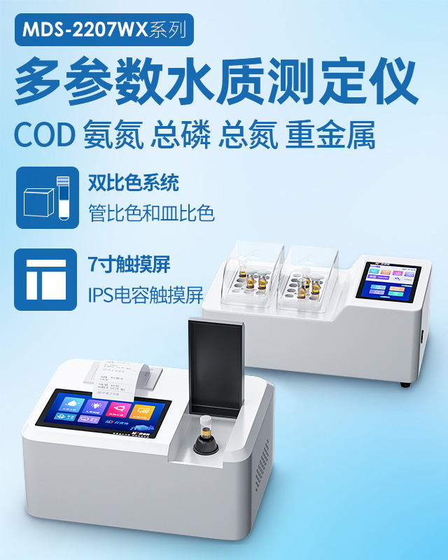 COD水質測定儀是基于快速消解分光光度法設計制造的。COD水質測定儀的檢測量程為0-15000mg/L(分段),檢測下限為0.7mg/L。